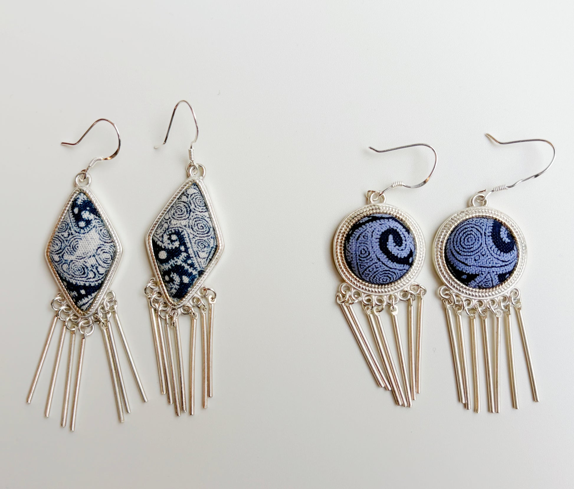 Discover a pair of earrings that carries the spirit of China’s southwest mountains—where indigo dyeing, Miao embroidery, and silver craftsmanship have been passed down for generations.